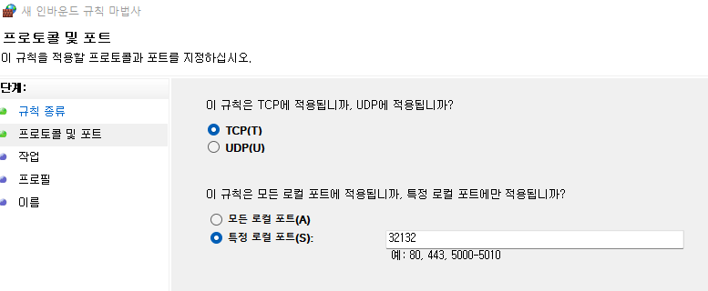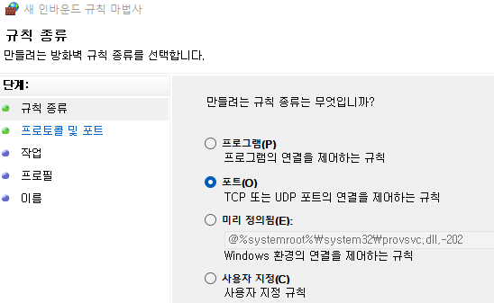 클릭하면 아래와 같이 '포트'로 설정해줍니다.