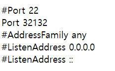 이 포스팅에서는 32132라는 번호의 포트를 사용한다고 하고 기본 22번 포트에서 32132번 포트로 바꿔보겠습니다.
