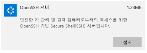 들어가신 뒤, '선택적 기능 추가' 버튼을 누르시고 'OpenSSH 서버'를 찾아서 설치해주면 됩니다!