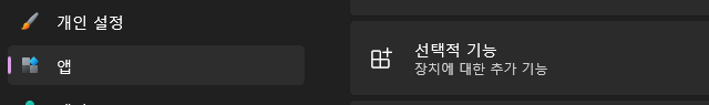 만약, "설정 > 앱"에서 '선택적 기능'이 보이지 않는 경우(Windows 11 업데이트), "설정 > 시스템 > 선택적 기능" 으로 가시면 찾으실 수 있습니다.