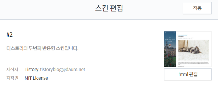 스킨 편집으로 이동하면 아래처럼 html 편집을 누르게 되면 HTML 코드가 보이게 된다.