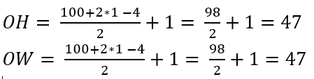 예를들어 100X100짜리의 사진을 넣는다고 하고, Stride를 2, Padding을 1이라고 하고 Filter의 크기를 4X4이라고 하면 다음과 같이 계산됩니다.